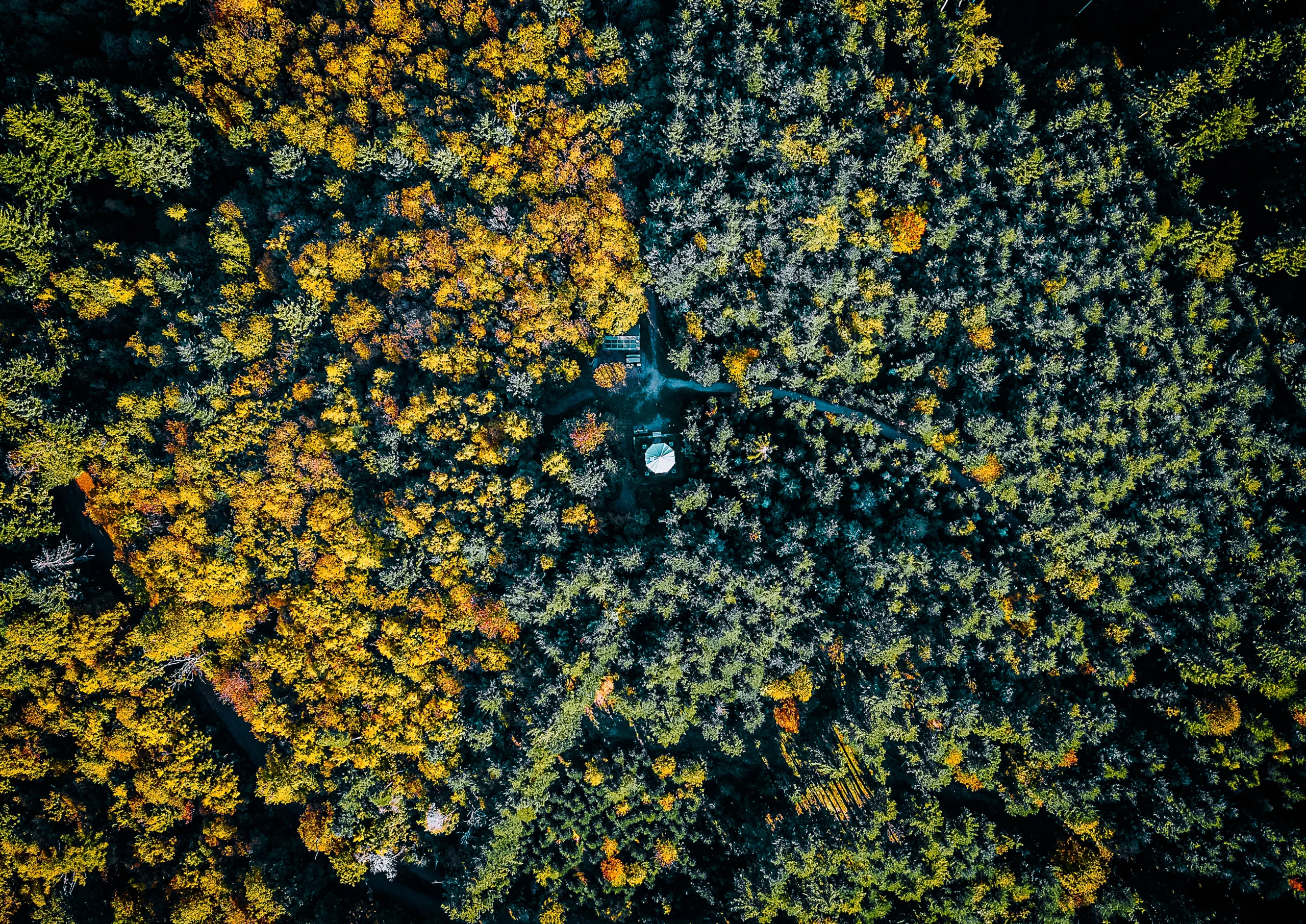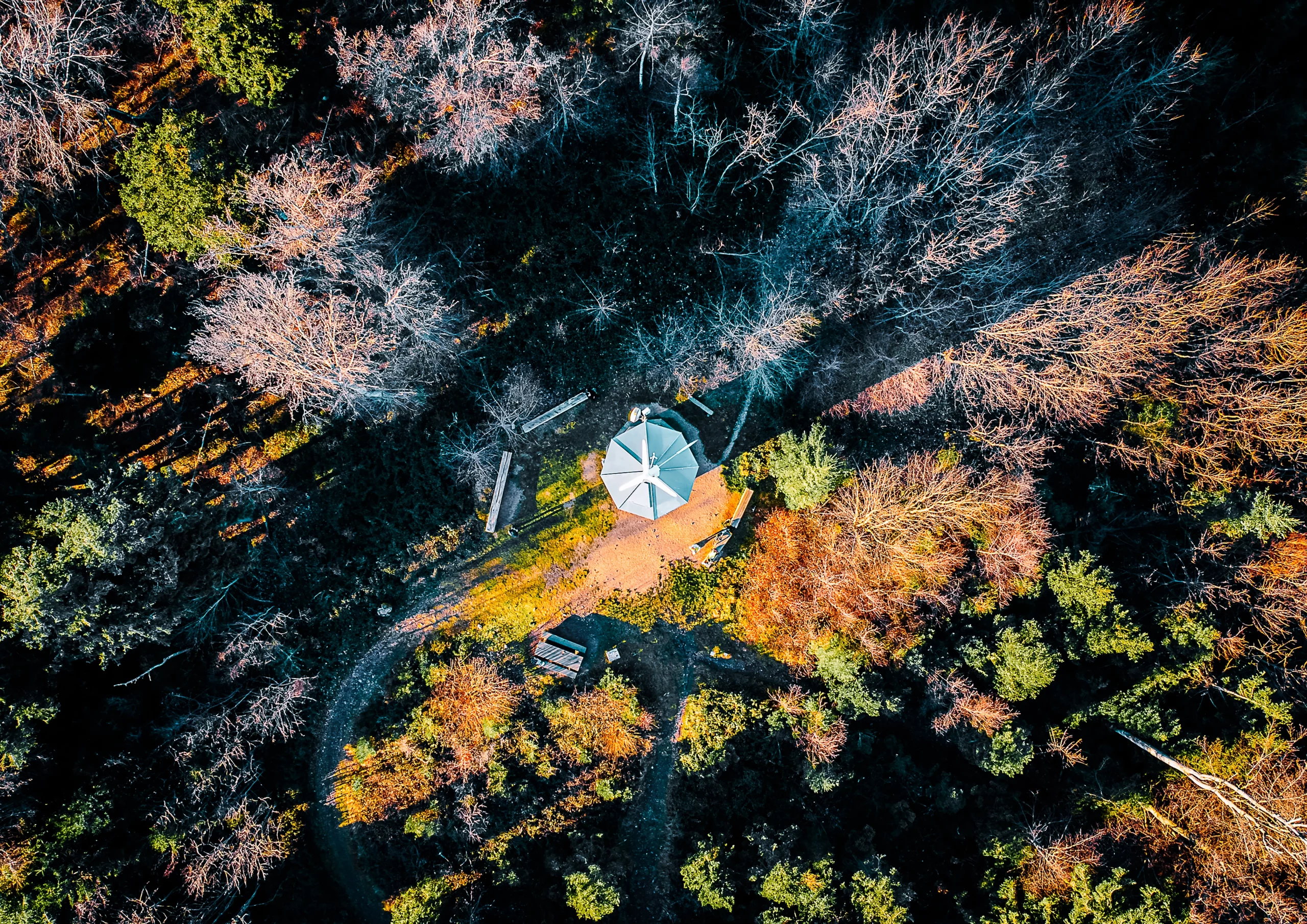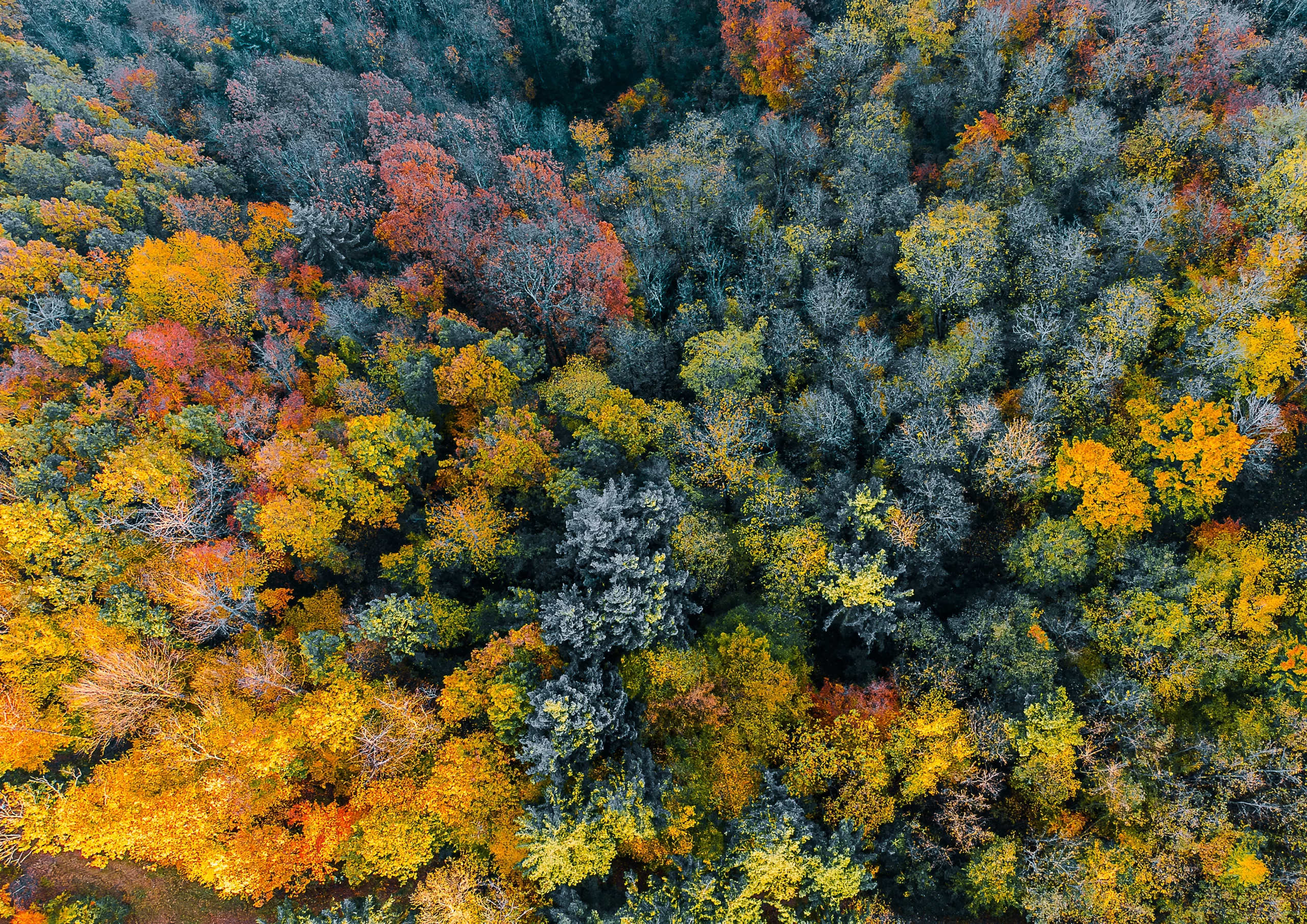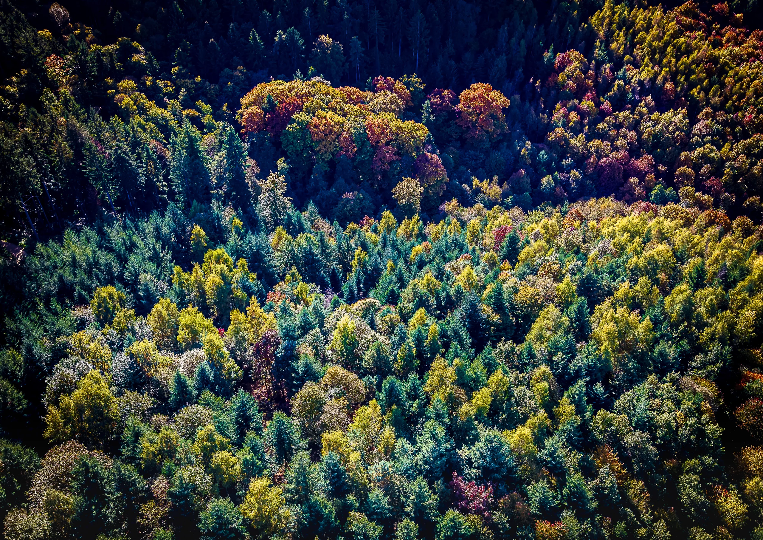 Wald von Oben im Herbstlicht bei Durbach